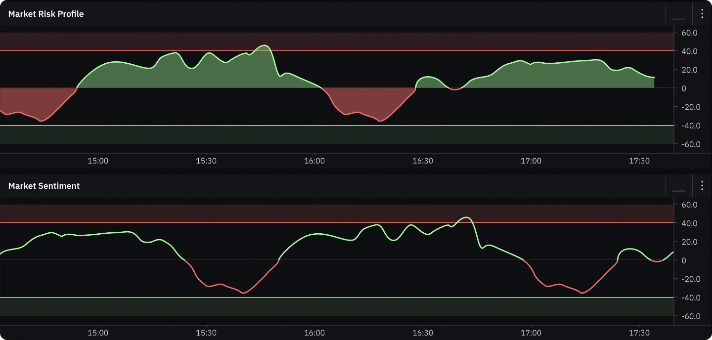 **Basic + Pro Users** can access Lambda 2.0’s powerful trader sentiment and risk appetite data. Anticipating when informed traders are likely to shift and allocate capital is a key driver of market moves.