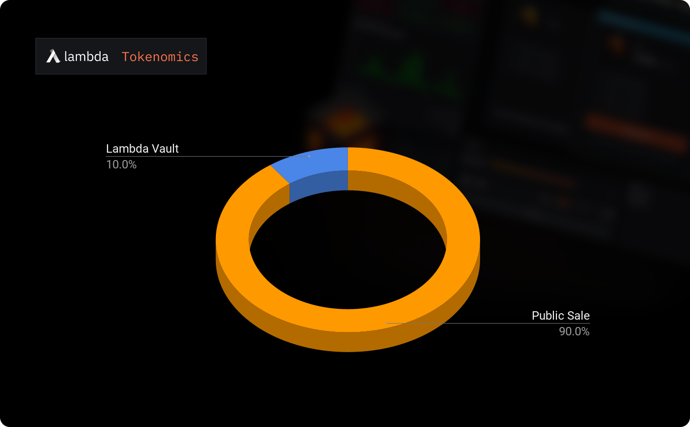 The LMDA tokenomic model is simple — 90% of the 100,000,000 total supply is floated to early investors at the [Lambda Token Portal](https://docs.lambda.markets/lambda-markets/powered-by-lmda/broken-reference) and 10% of the token supply is held in the Lambda Vault to bootstrap market liquidity.